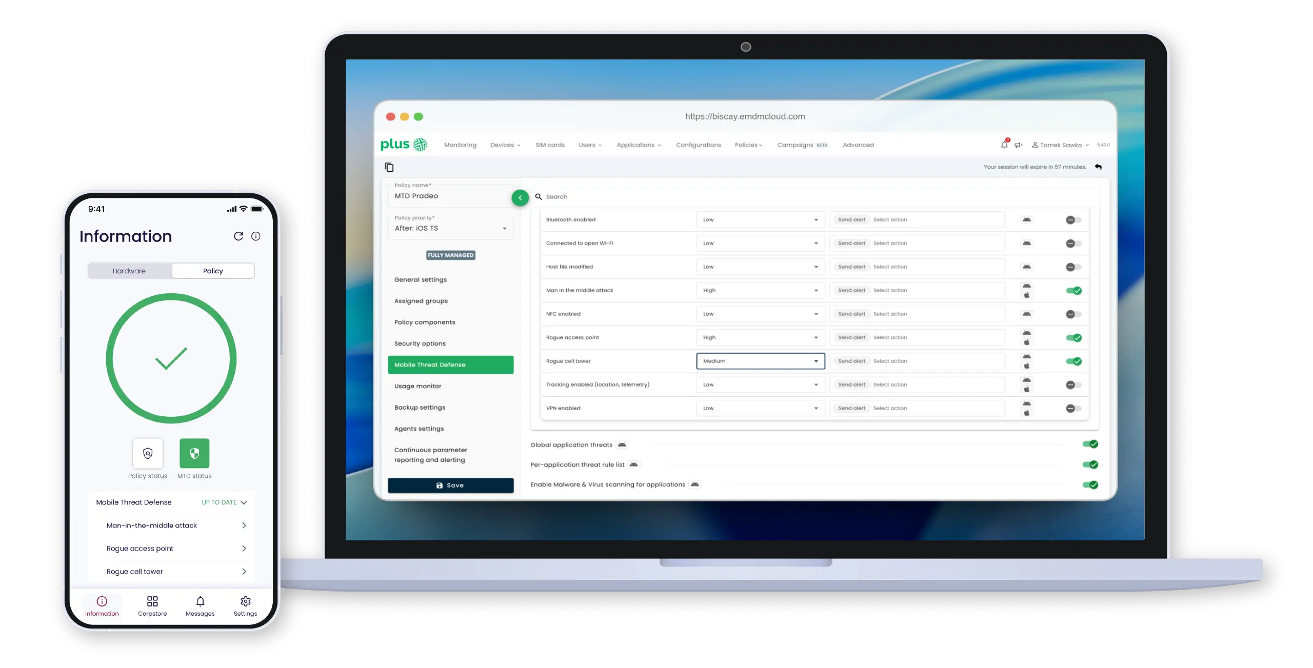 Zazwyczaj wdrożenie MTD wygląda tak: macie agenta MDM (do zarządzania) i musicie doinstalować drugą aplikację (do ochrony). To oznacza: