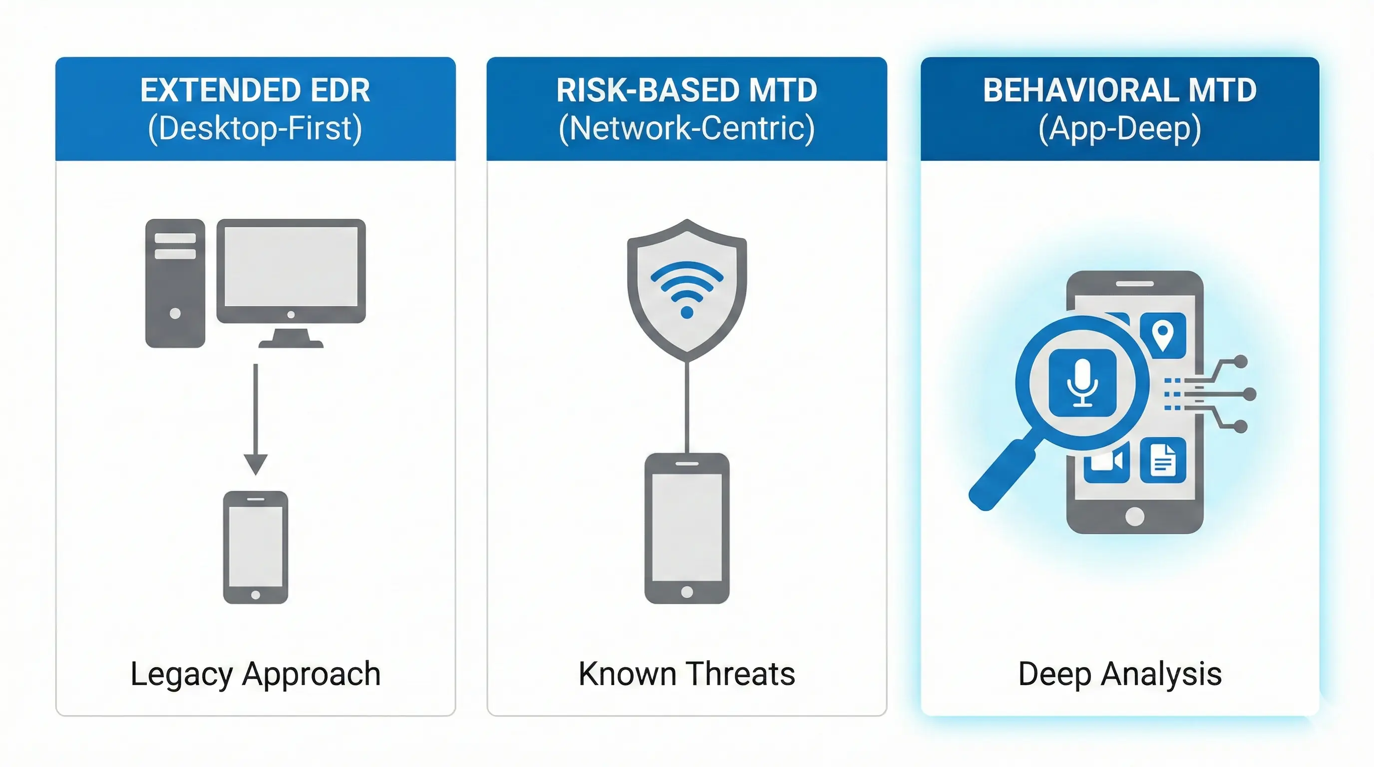 No dobra, powiecie: „Tomek, ale MTD to nic nowego. Mamy Check Pointa, Zimperium, Lookouta”. Zgoda. Niemniej jednak na rynku mobilnego bezpieczeństwa działają trzy typy rozwiązań i warto je rozróżniać: